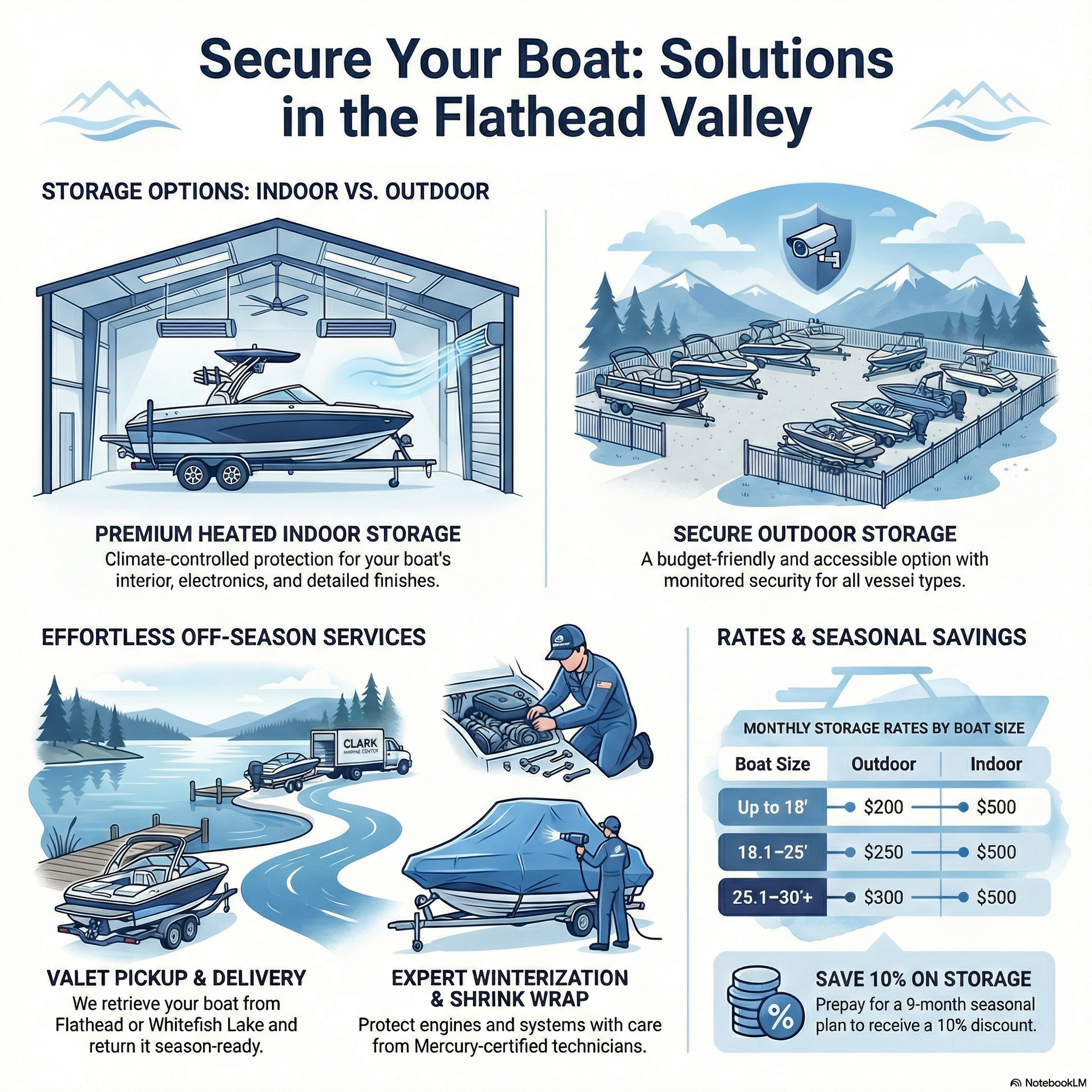 Valet boat storage: Pickup and delivery for Flathead & Whitefish Lakes.